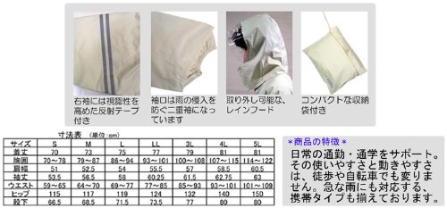 【頑張って送料無料!】 通勤・通学レインスーツ 自転車通学に最適!! 学生さん御用達レインコート #3303 レインタック 雨具 雨合羽 アマガッパ