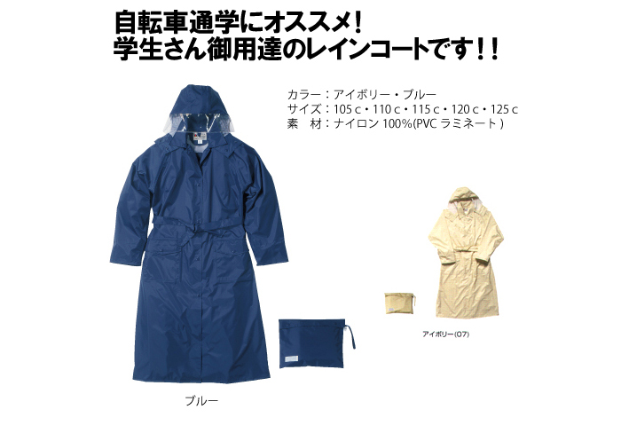 【頑張って送料無料!】 通勤・通学レインの定番 学童に最適!レインタックコート 自転車通学に最適!!学生さん御用達レインコート #3304 リュックを担いでの着用は1~2サイズ大き目に!