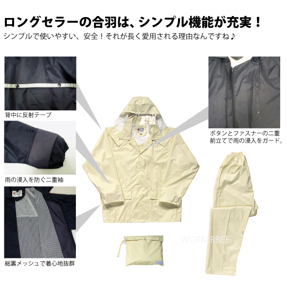 【頑張って送料無料!】 通勤・通学レインスーツ 自転車通学に最適!! 学生さん御用達レインコート #3308