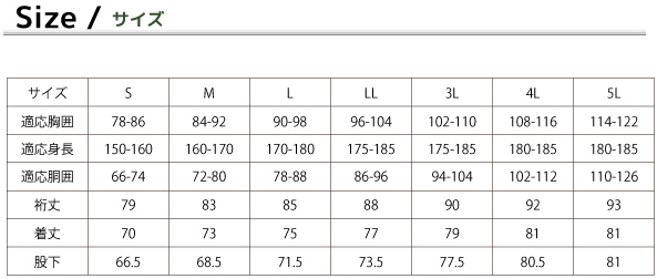 サイズ/着丈S/M/L/LL/3L/4L/5L