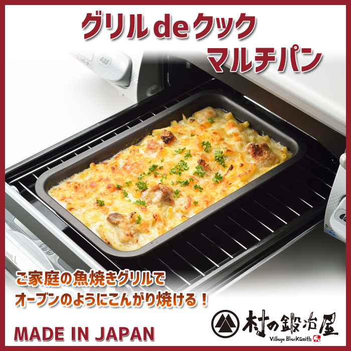 【安心の日本製】 グリルdeクック マルチパン 38294 魚焼きグリルで、美味しくちょうりできる!! 高温で食材をふっくら焼き上げます フッ素加工でお手入れラクラク 幅25.5×奥行15.5×高さ3.5cm