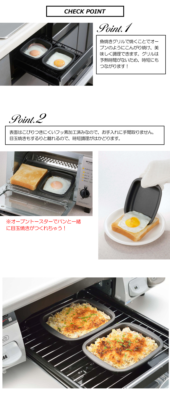 耐熱フッ素使用、目玉焼きがアッという間にできあがり!