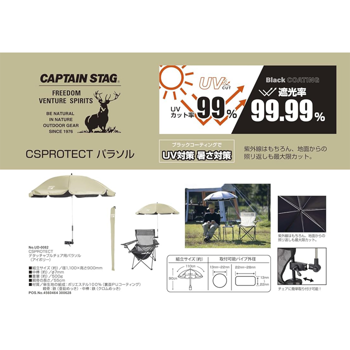 CAPTAINSTAG(キャプテンスタッグ)CSPROTECT デタッチャブルチェア用パラソル(アイボリー)UD-82【頑張って送料無料!】