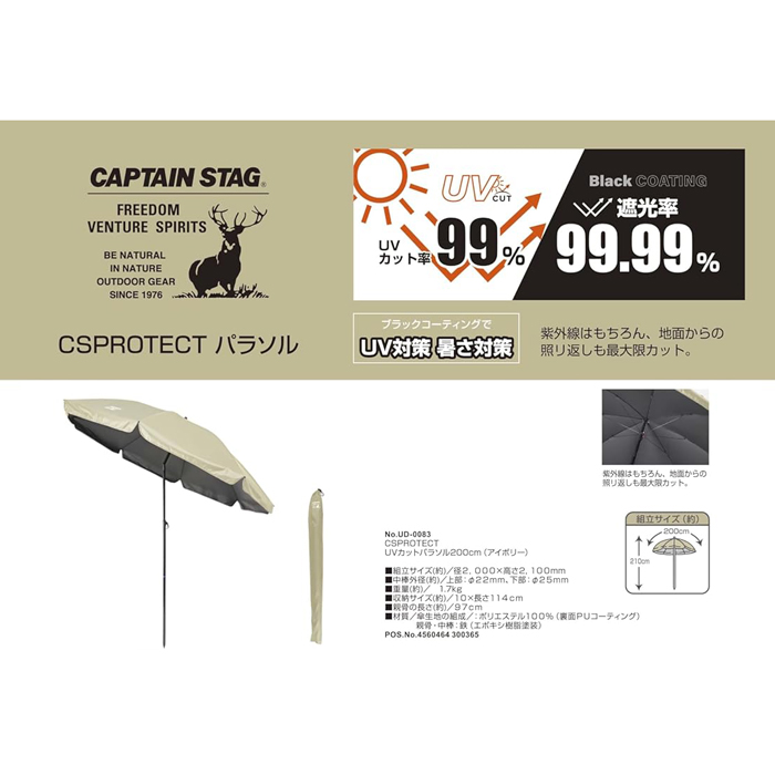CAPTAINSTAG(キャプテンスタッグ)CSPROTECT UVカットパラソル200cm(アイボリー)UD-83【頑張って送料無料!】
