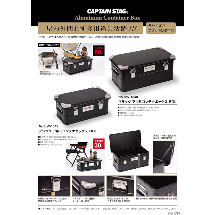 CAPTAINSTAG(キャプテンスタッグ)アウトドア コンテナ 施錠可能 ブラック アルミコンテナボックス 容量30L 取っ手付き スタッキング可能UW-1549【頑張って送料無料!】