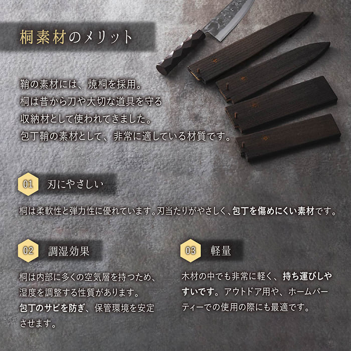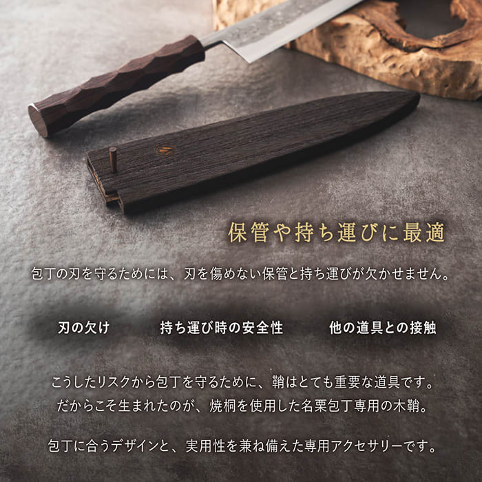 だからこそ生まれたのが焼桐を使用した包丁鞘。