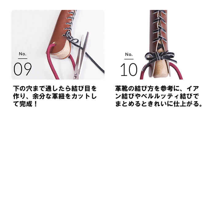 レザー表面におぜしかプロジェクトと村の鍛冶屋のロゴ刻印を配しました。