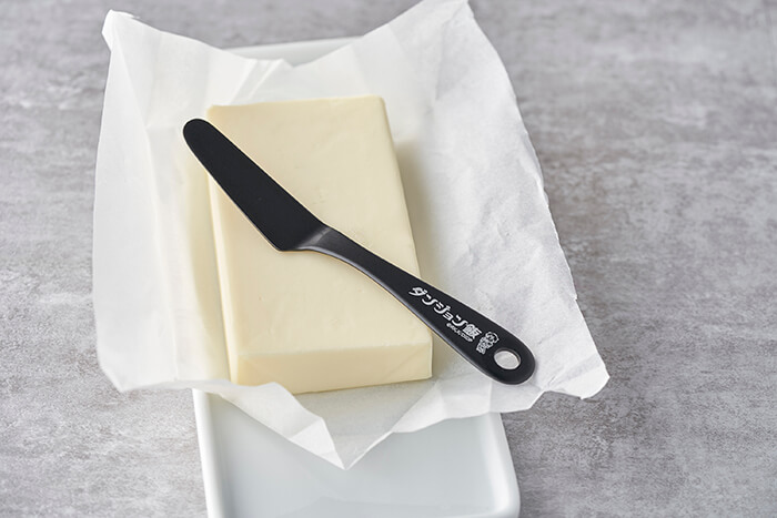 冷蔵庫から出したばかりのカチカチのバターも簡単にカットできます。