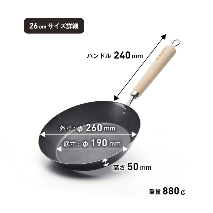 商品詳細材質:鉄(内側:無塗装、外側:シリコン塗装)、ハンドル:木(無塗装)