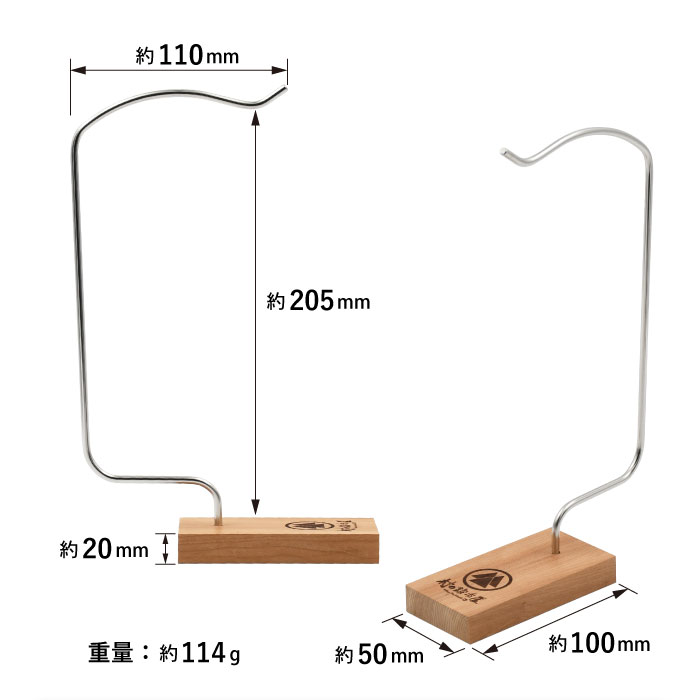 ハンガー部分:横幅 約110mm、スタンドまでの高さ 約205mm