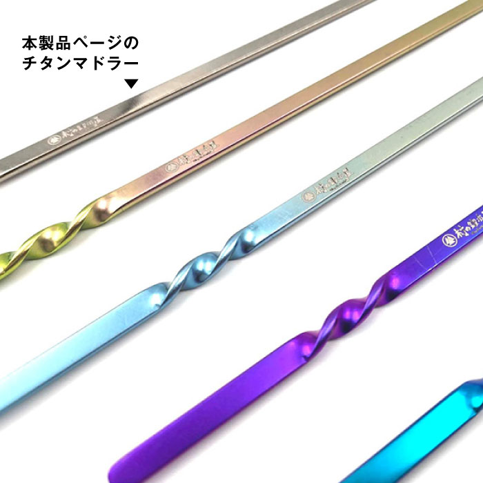 燕三条製の村の鍛冶屋による純チタンマドラーは、日本の職人技が光る逸品です。