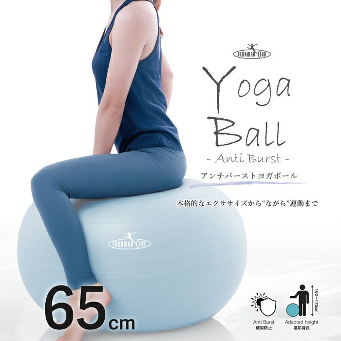 ちょっとしたエクササイズを毎日手軽にできます IRONMAN CLUB(鉄人倶楽部) アンチバースト ヨガボール 65 IMC-162IB 65cm ポンプ付 予備栓1個付 破裂しにくい