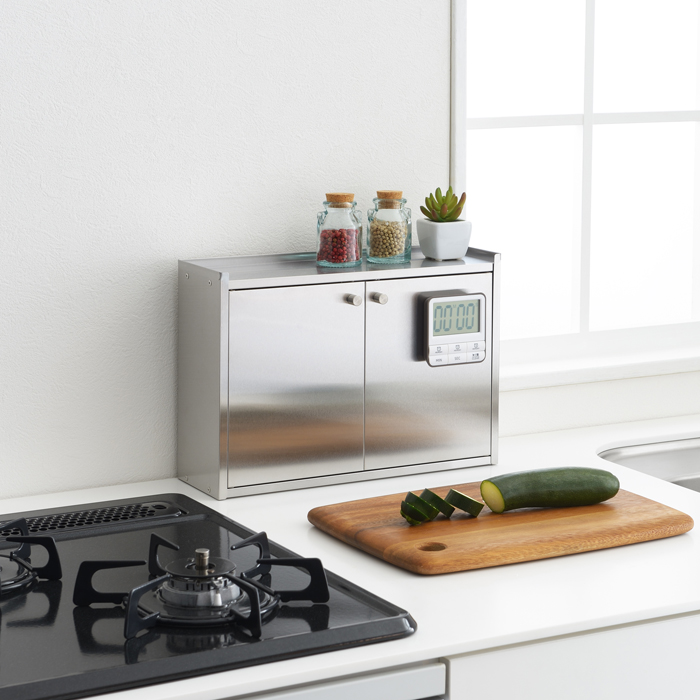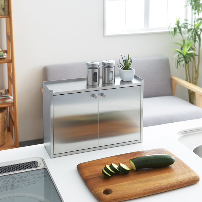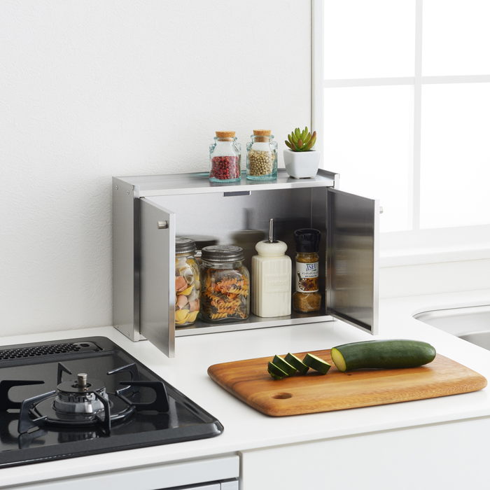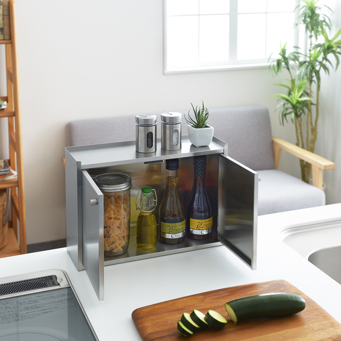 キッチンカウンターやシンク周りによく使う調味料をまとめて収納できる