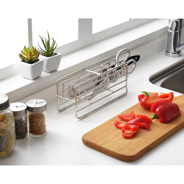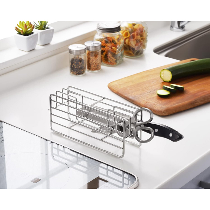 包丁やキッチンバサミといった刃物をまとめて収納できるスタンド