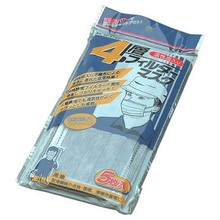 4層活性炭入りフィルターマスク5枚入(SV-0733)【セーブ・インダストリー】活性炭入りの4層式フィルター