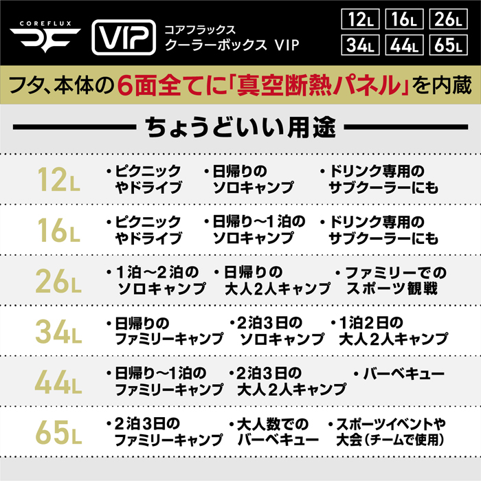 フタと本体の6面全てに内蔵することで、従来の発砲スチロール製品より保冷能力が大幅アップ。