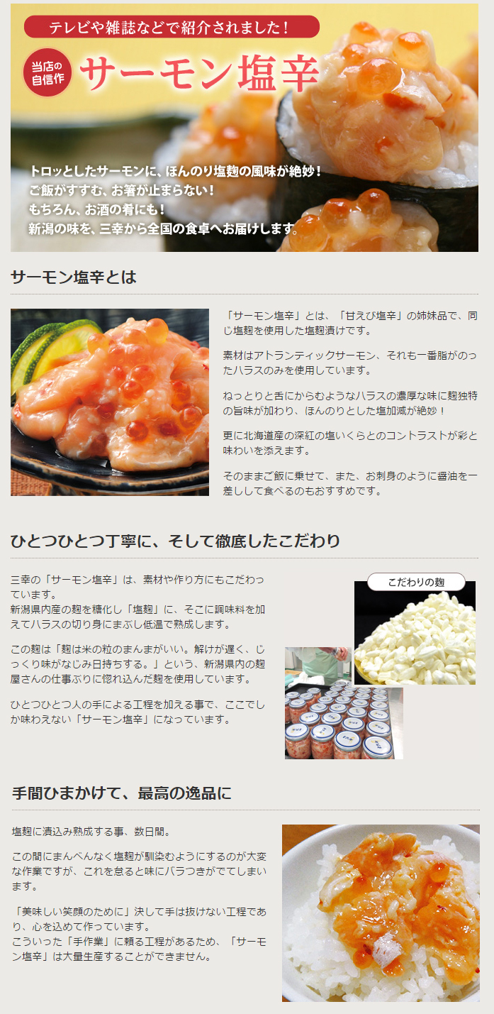 【クール宅急便】新潟 三幸 高級珍味 サーモン塩辛 200g M-34 ※メーカー直送クール便のため3980円以上送料無料対象外代