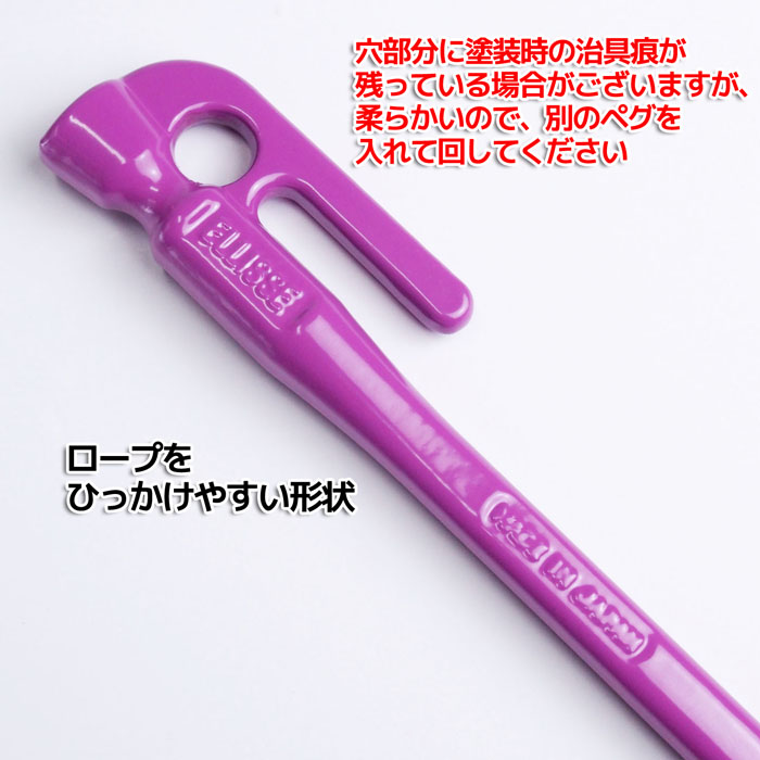 通常の丸棒のペグは地中でペグがクルクルと回り使い勝手が悪いですが、楕円のペグは、砂利や石が混じった固い地面でも入り込みが良く、地中でクルクルと回る事なく、ガッチリと固定します。