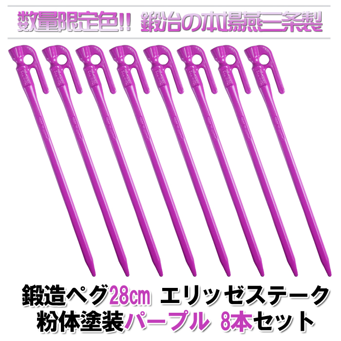 素材の丸い鋼材を約1100℃になるまで真っ赤に熱し、約1トンという強力な力で一気に断面を楕円形に潰した鍛造ペグ。熱した鋼材に強力な圧力を加えることによって、優れた強度を持つペグが完成します。
