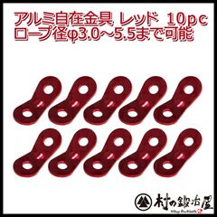 【頑張って送料無料!】 アルミ自在金具レッド 10個入ALM-RED-10P 発色綺麗な赤の自在! ロープ径φ3.0-5.5mmまで対応 ネコポスのため代引・日時指定不可