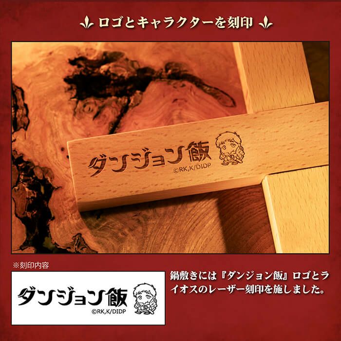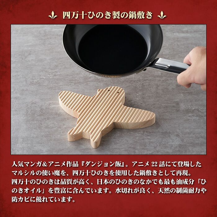 他の画像を見る アニメ『ダンジョン飯』とのコラボアイテム第二弾! 【DGM-020】ダンジョン飯 ひのきの鍋敷き(マルシルの使い魔)『ダンジョン飯』ロゴを刻印土佐の四万十ひのきを使用した逸品ネコポス配送 税込価格 ¥ 3,630 税込 カートに入れる お気に入りに登録する