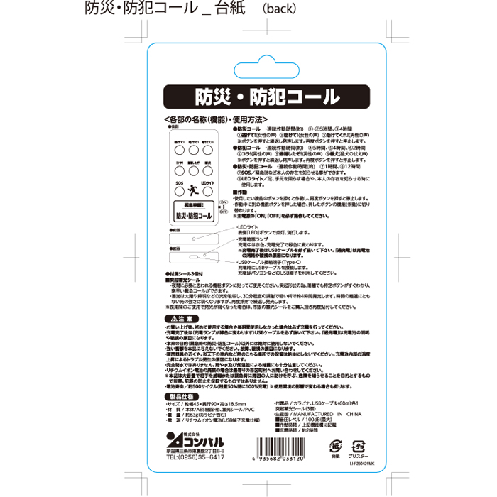 ボタンプッシュで発声し100dBの大音量で助けを求め、注意喚起し、不審者を威嚇できます。
