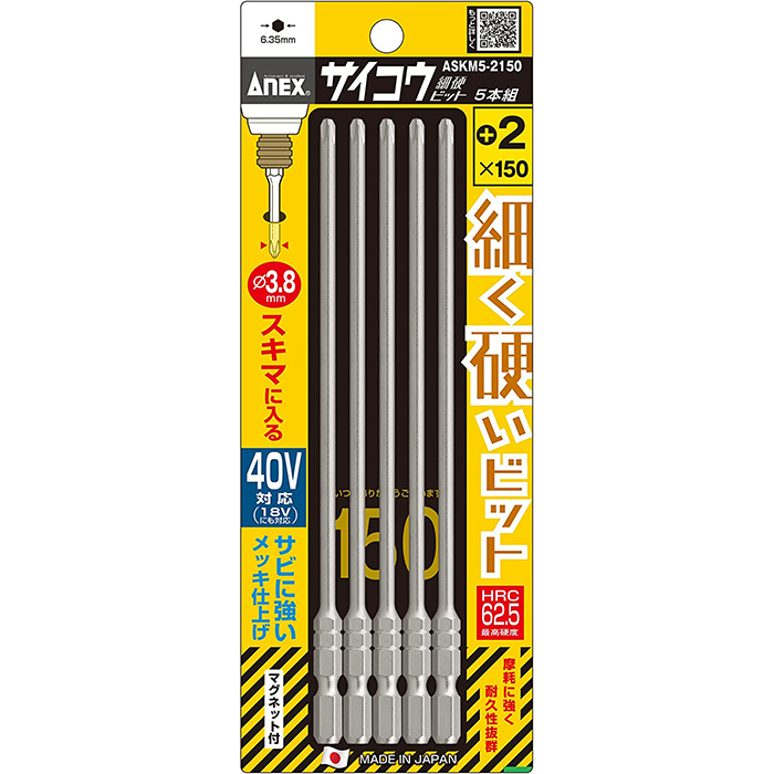 【ASKM5-2150】ANEX サイコウ(細硬)ビット 5本組 +2X150 スキマに入る細く、硬いビットΦ3.8mm【頑張って送料無料!】ネコポス