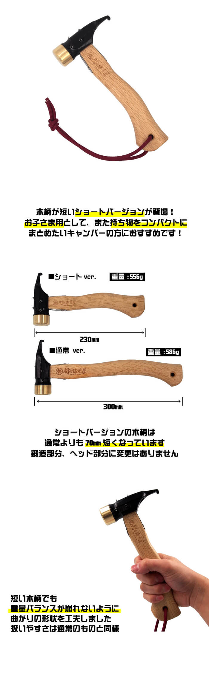 長らくご好評いただいているエリッゼステークアルティメットハンマーに木柄が短いショートバージョンが登場!