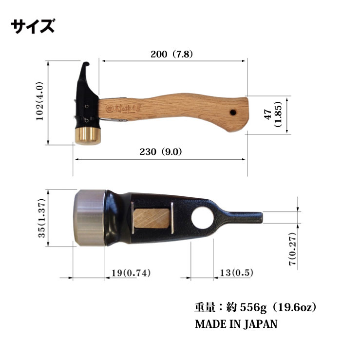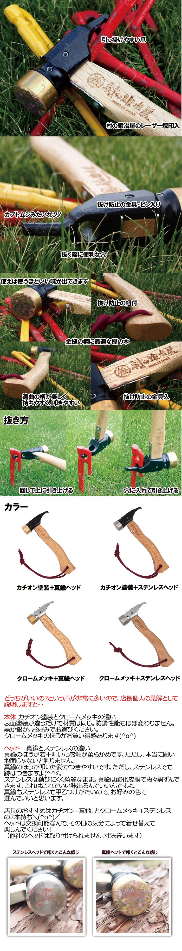 優れたグリップと取り回しの良いサイズで、実用に申し分ない上に格好の良いハンマーです。