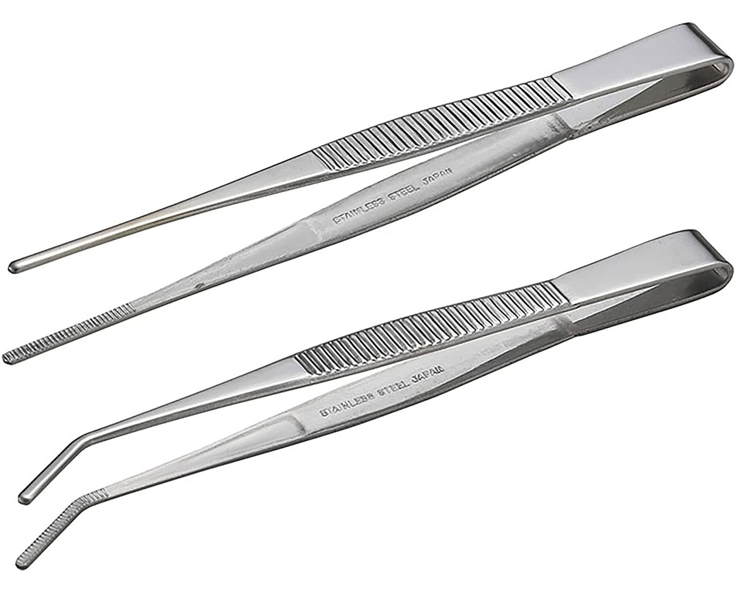 セット内容:ステンレスピンセット 先端ギザ(直125mm×1本、先曲125mm×1本)