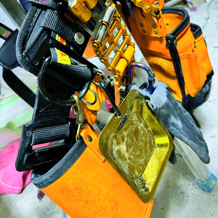 カラビナ付で腰回りやハーネスなどに取付可能です。