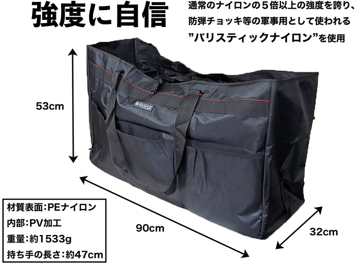 1600Dと強度が通常のバッグより格段に高いので椅子やテーブルなどキャンプ道具一式をまとめて収納しても摩耗しにくくガシガシ使えます!