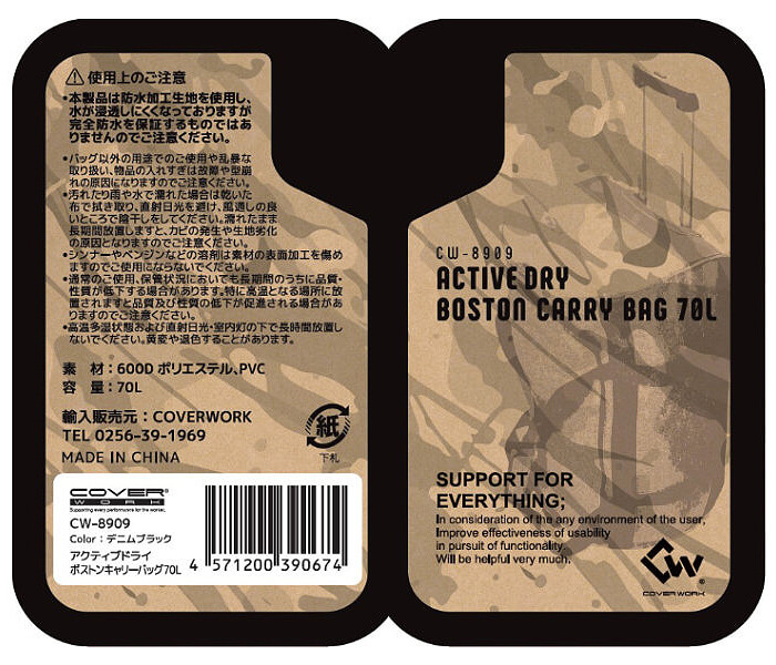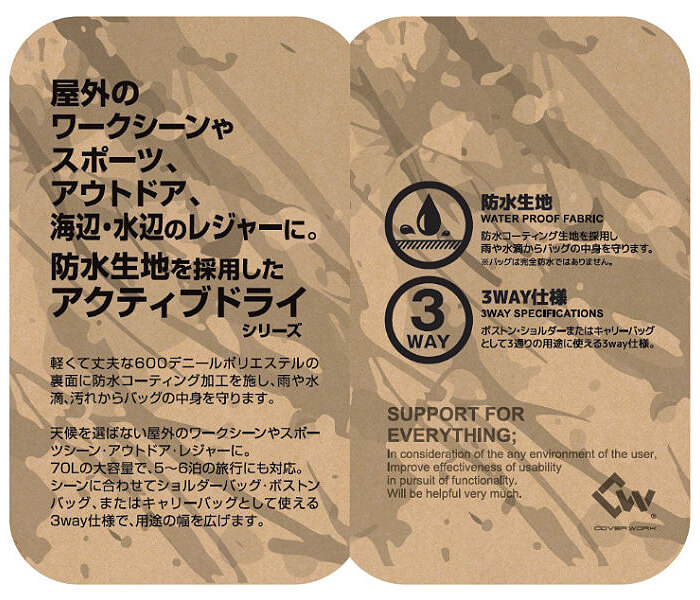 アクティブドライ スタッフバッグ 20L[CW-8902]<COVERWORK カヴァーワーク>屋外ワーク、スポーツ、アウトドア、海・水辺のレジャーに。※防水生地/止水ファスナー/取外し可能ストラップ/2WAY仕様【頑張って送料無料!】