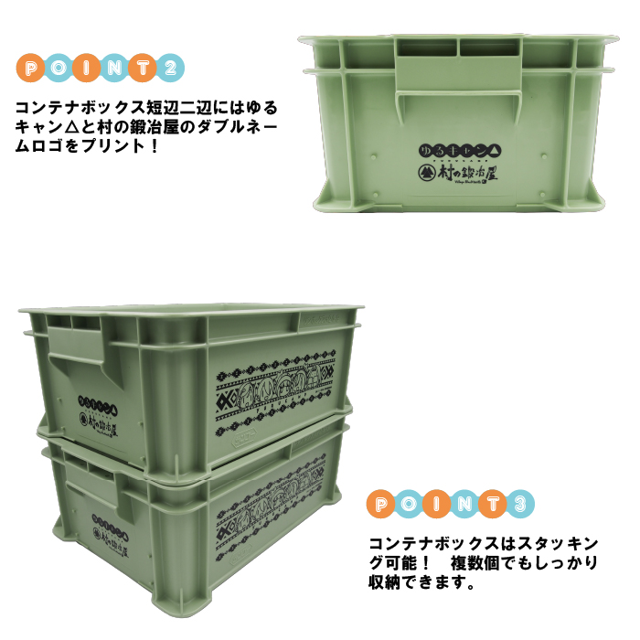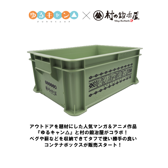 コンテナボックス短辺二辺にはゆるキャン△と村の鍛冶屋のダブルネームロゴをプリント!