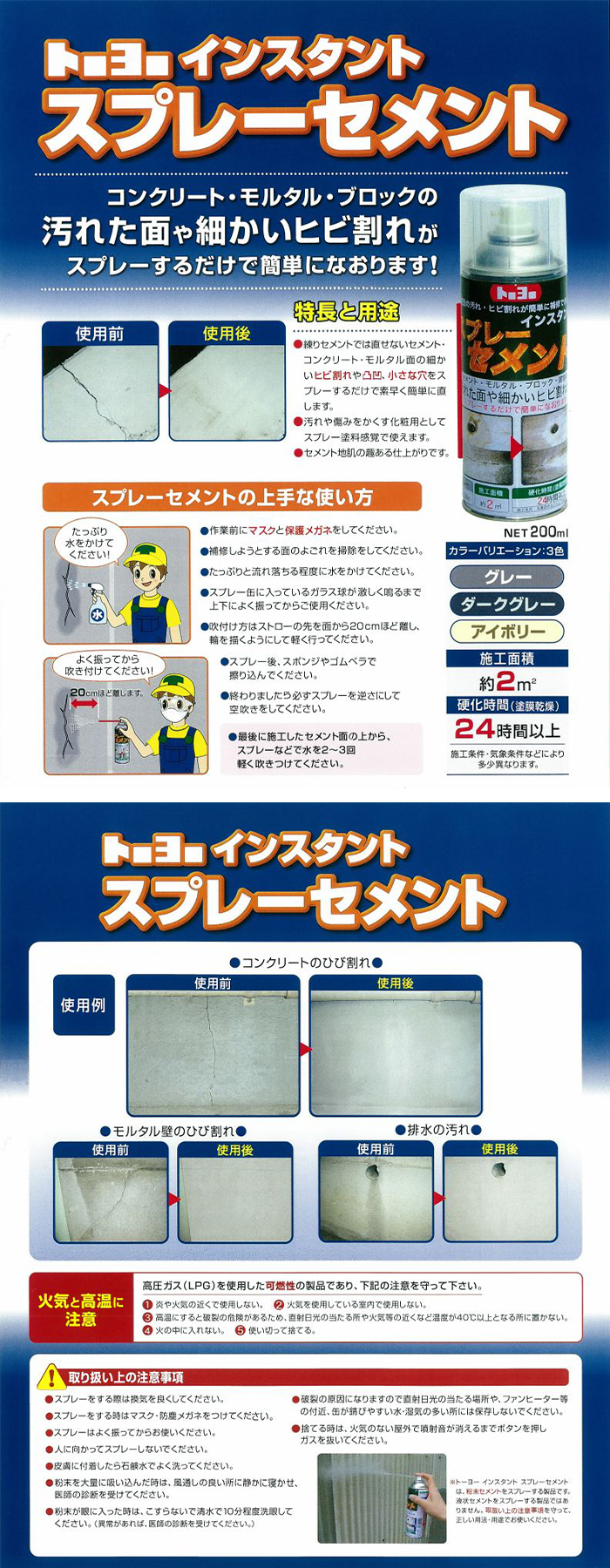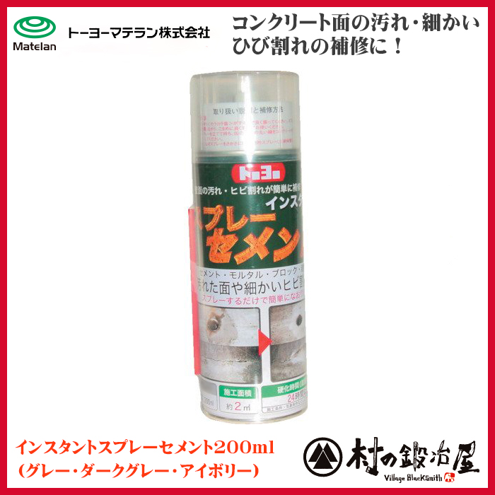 トーヨーマテラン 【インスタントスプレーセメント 200ml】 コンクリート面の汚れ・細かいひび割れの補修にピッタリ! グレー・ダークグレー・アイボリーの3色から選べます。