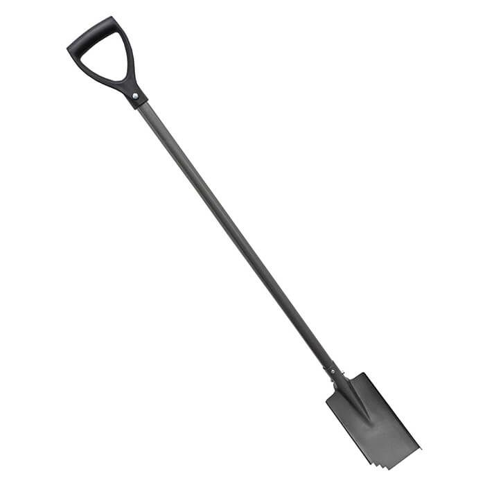 刃の右側面は、土のう袋等に泥を入れやすくハケやすい低いヘリ設計。