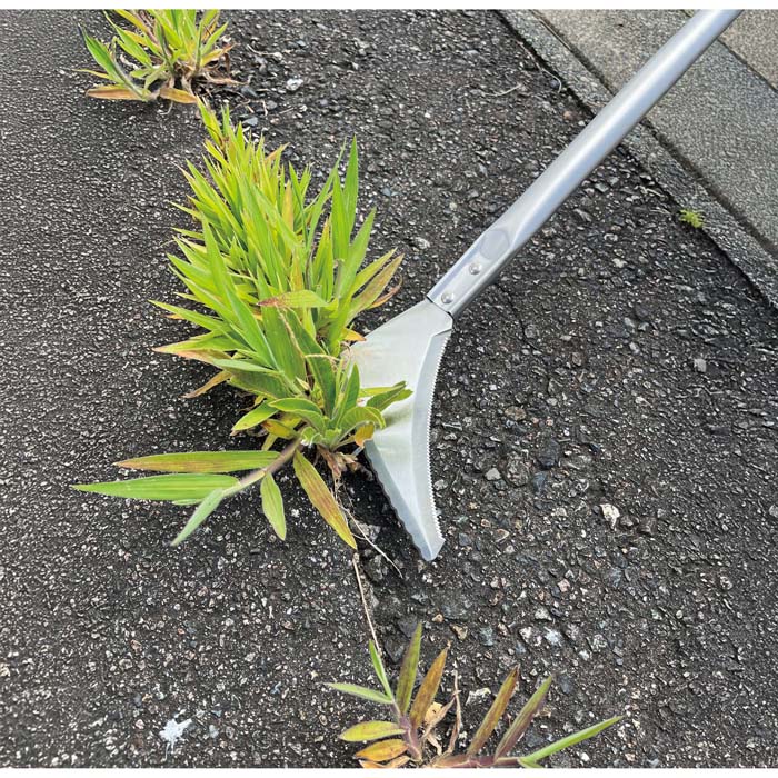 隙間や角の雑草を鋸刃で刈る、波刃で刈る