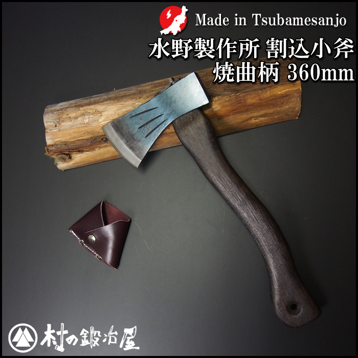 【頑張って送料無料!】越後三条打刃物 水野製作所作 割込小斧 焼曲柄 焼ボタン柄360mm 皮サック入 010-144