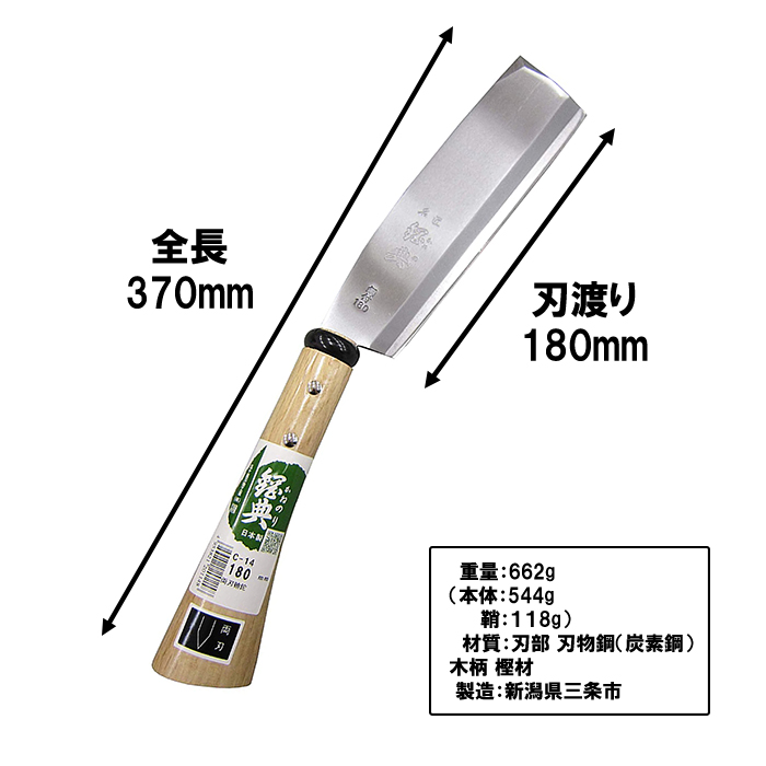 【頑張って送料無料!】 五十嵐刃物工業 鋼典 鋼付両刃鞘鉈 180mm c-14 三条の職人が作る逸品