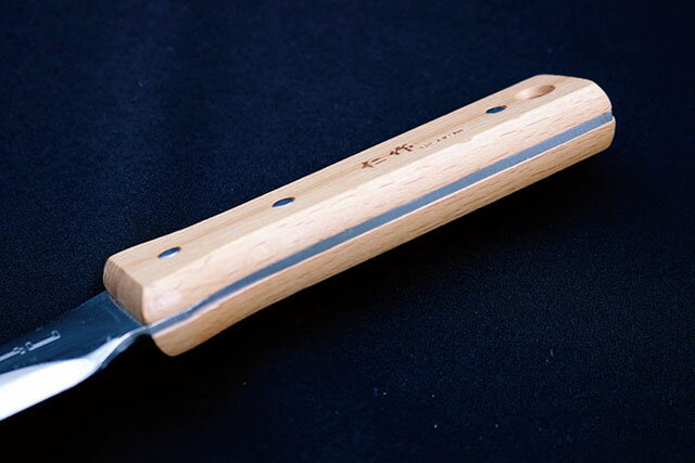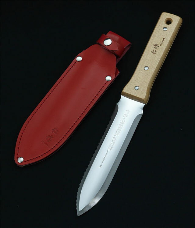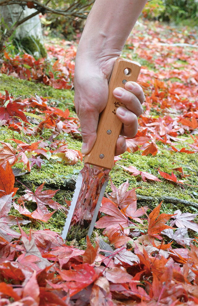 土を掘ることができる日本独自の形状と言われるスコップ状の刀身形状をもつ園芸用ナイフ