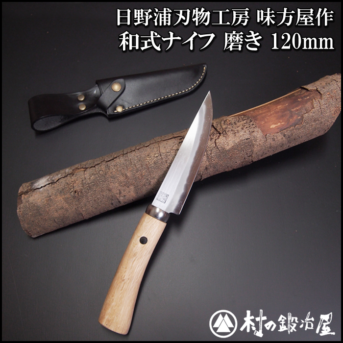 メイドイン三条の和式ナイフ! 【頑張って送料無料!】【刃物の本場三条製】 日野浦刃物工房 味方屋作 和式ナイフ磨き120mm ロープを切ったり調理時に活躍! アウトドアに最適! シックな革製の鞘付き