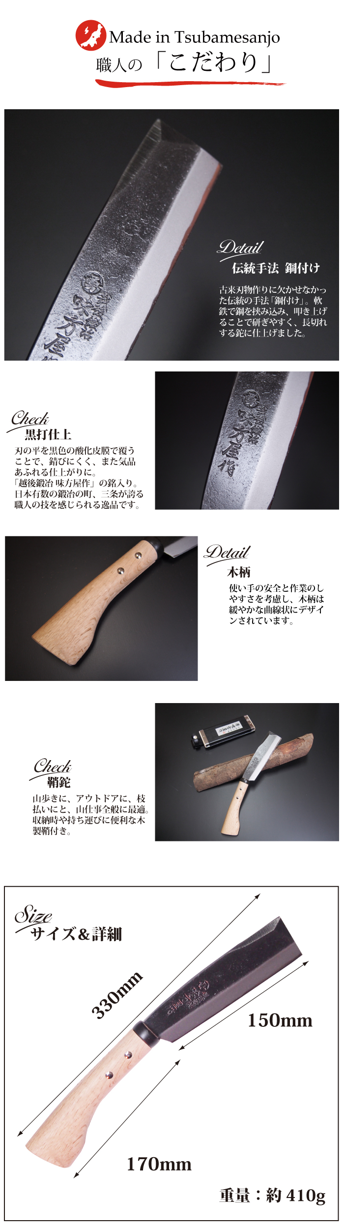三条 鉈鍛冶職人 『 味方屋作 』 伝統手法による
