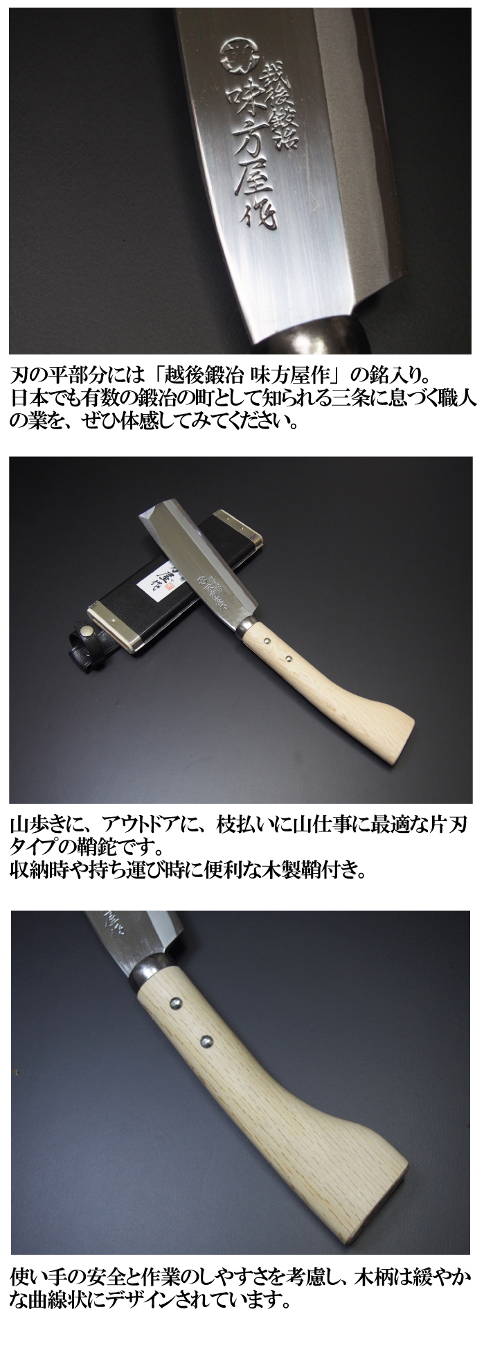 三条 鉈鍛冶職人 『 味方屋作 』 伝統手法による 『鋼付け』 (はがねつけ)