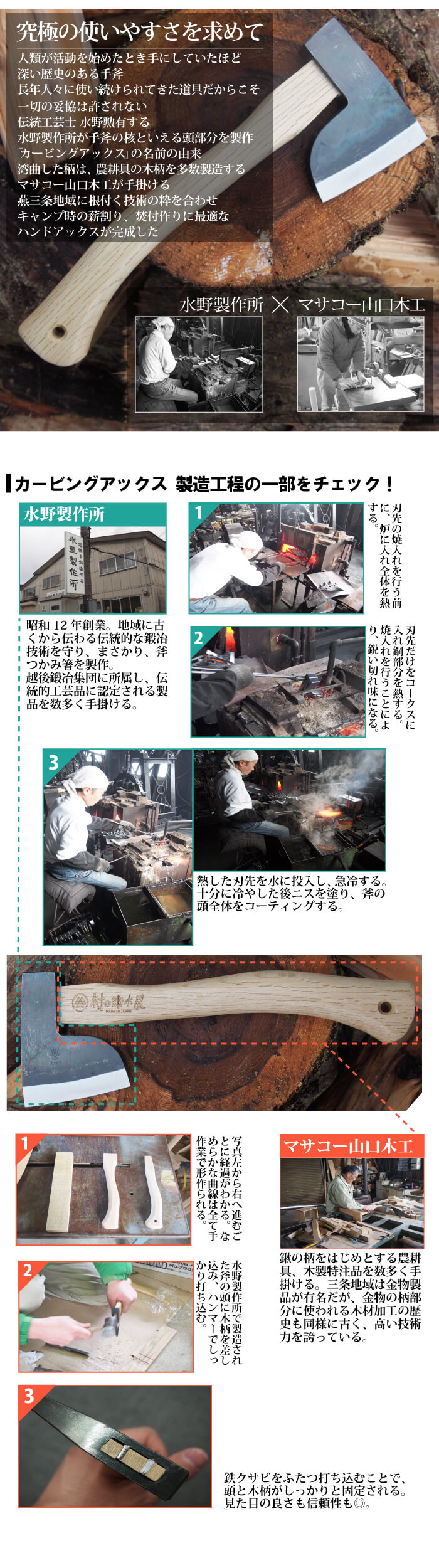【水野製作所×マサコー山口木工×村の鍛冶屋】のトリプルコラボが生み出す究極のハンドアックスです!