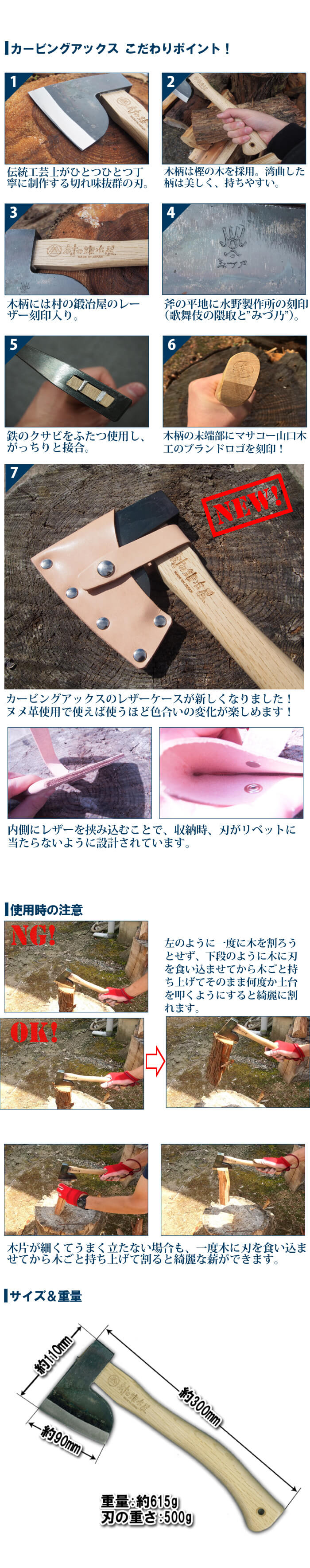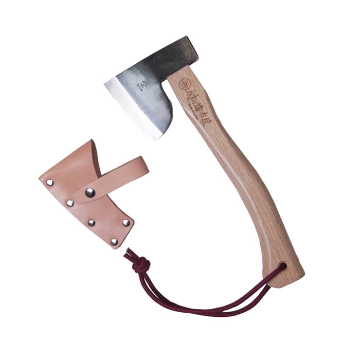 全鋼ハンドアックス カービングアックス馬斧500g刃物の本場三条製!水野製作所×マサコー山口木工×村の鍛冶屋革ケース付!樫 300mmキャンプ時の薪割り、焚付づくりに最適な鉞!【頑張って送料無料!】