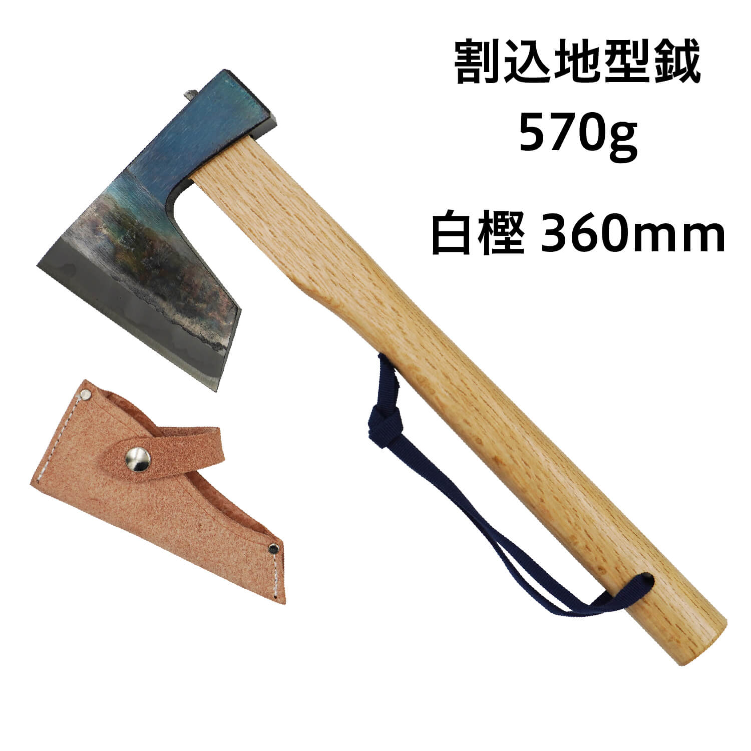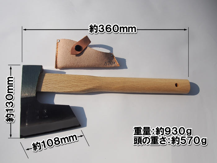 【頑張って送料無料!】越後三条打刃物 水野製作所作 割込地型鉞(まさかり)570g 白樫360mm 皮サック入 010-002