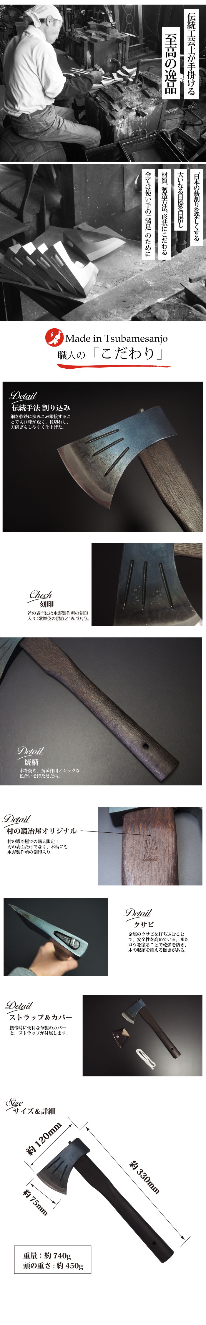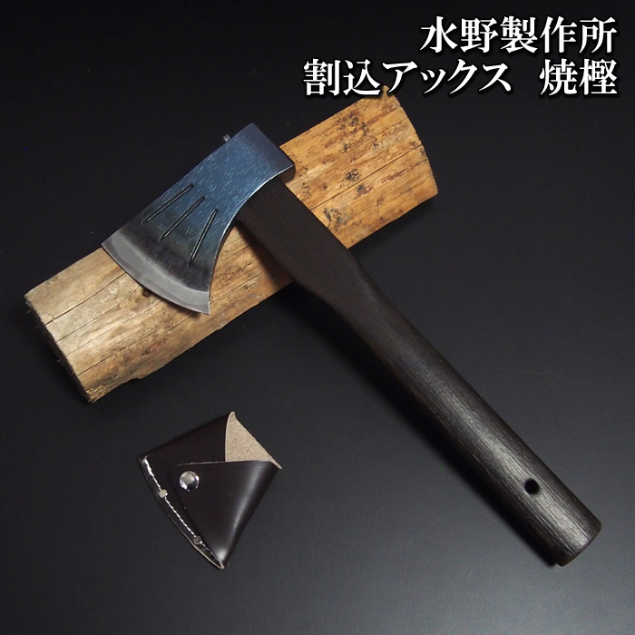 【頑張って送料無料!】越後三条打刃物 水野製作所作 焼樫割込アックス450g ボタン330mm サック入 010-133