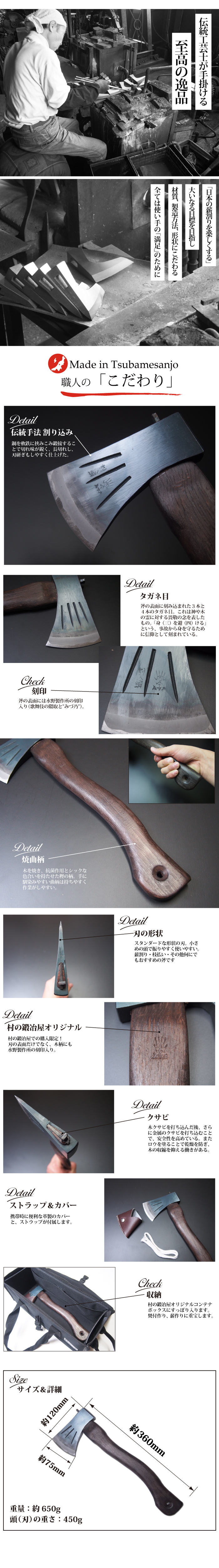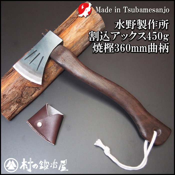 【頑張って送料無料!】越後三条打刃物 水野製作所作 焼曲柄 割込アックス450g 樫360mm サック入 焼曲柄が手になじみ使いやすくカッコイイ! 010-143