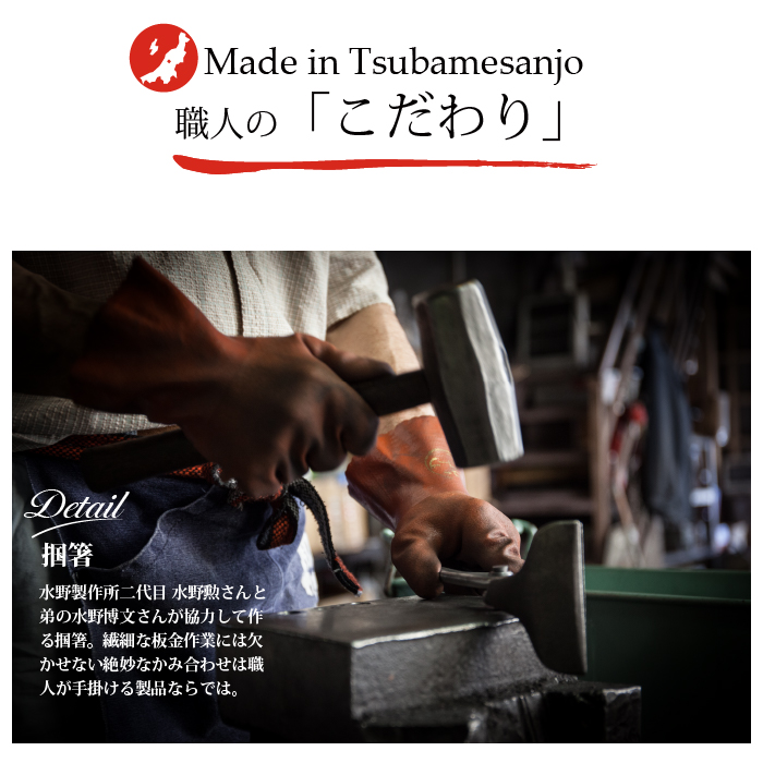 水野製作所二代目 水野勲さんと弟の水野博文さんが協力して作る掴箸。