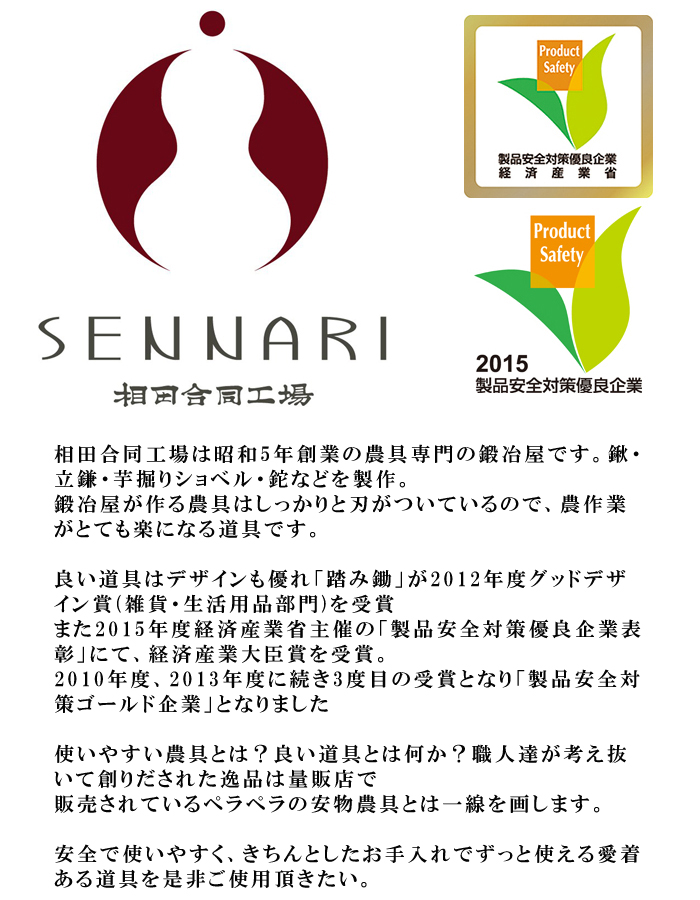 昭和五年創業。農具専門の鍛冶屋相田合同工場が手掛ける